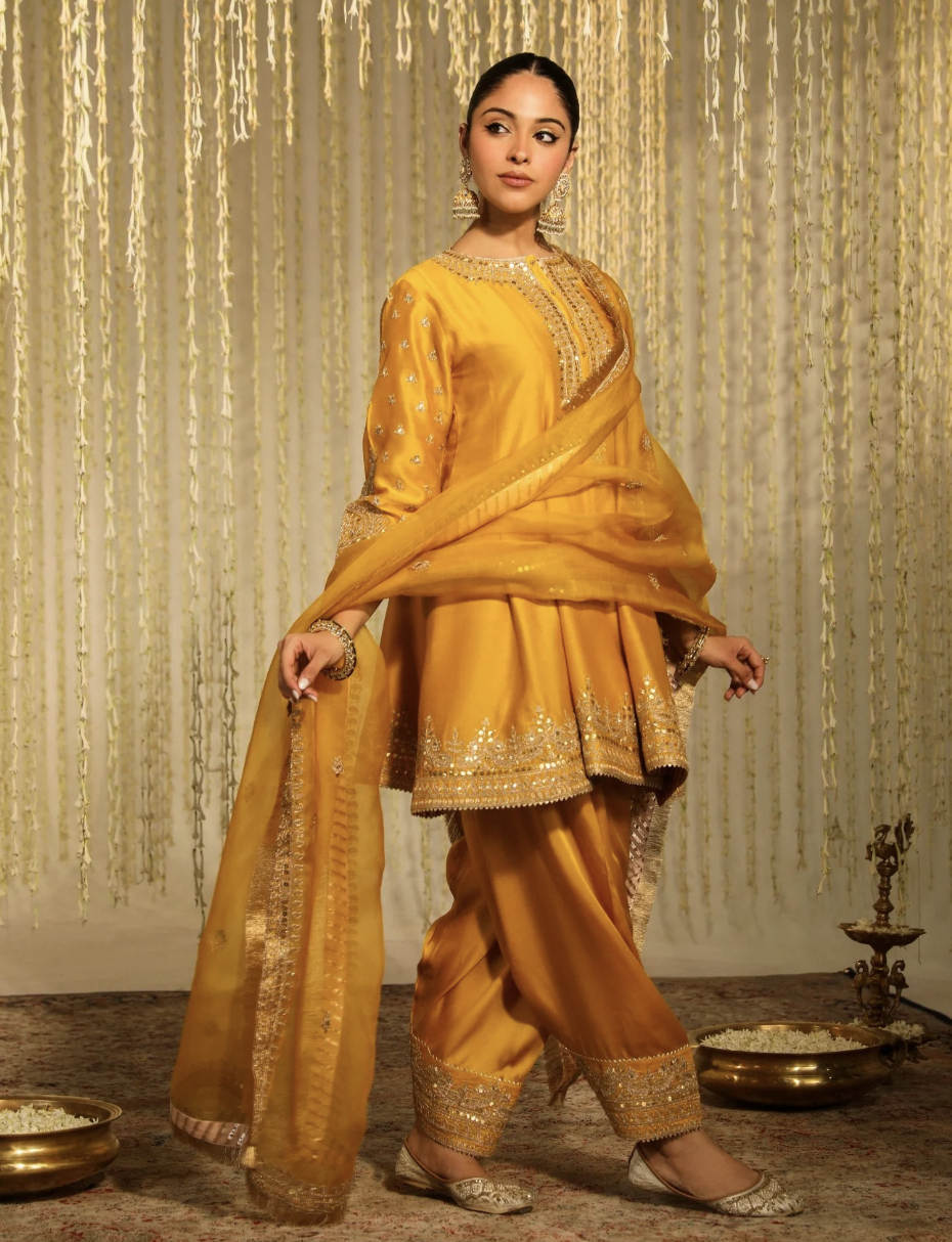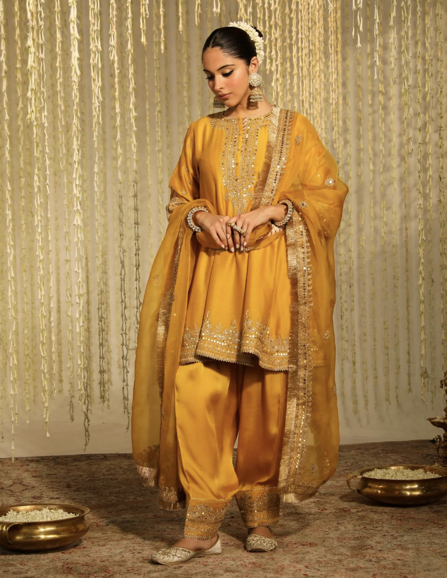 Warizah – Glaze Mustard Short Anarkali With Salwar And Dupatta